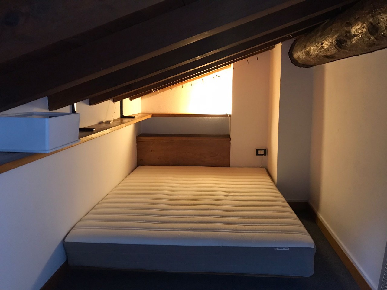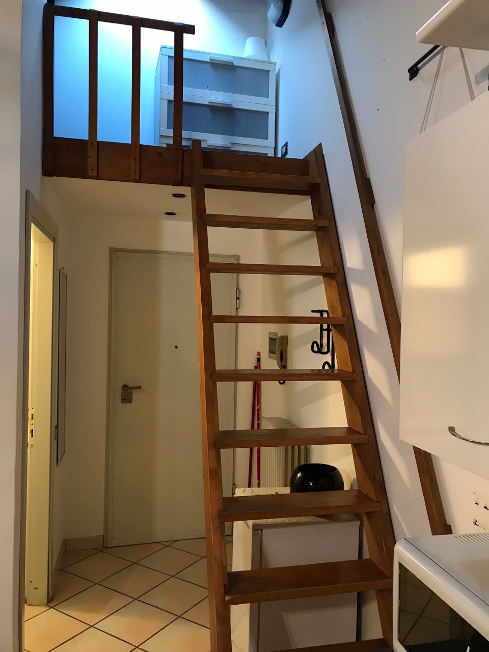 ingresso, unico locale con angolo cottura e divano letto matrimoniale, bagno con doccia e lavatrice, piccolo soppalco ad uso ripostiglio. Mq. 40