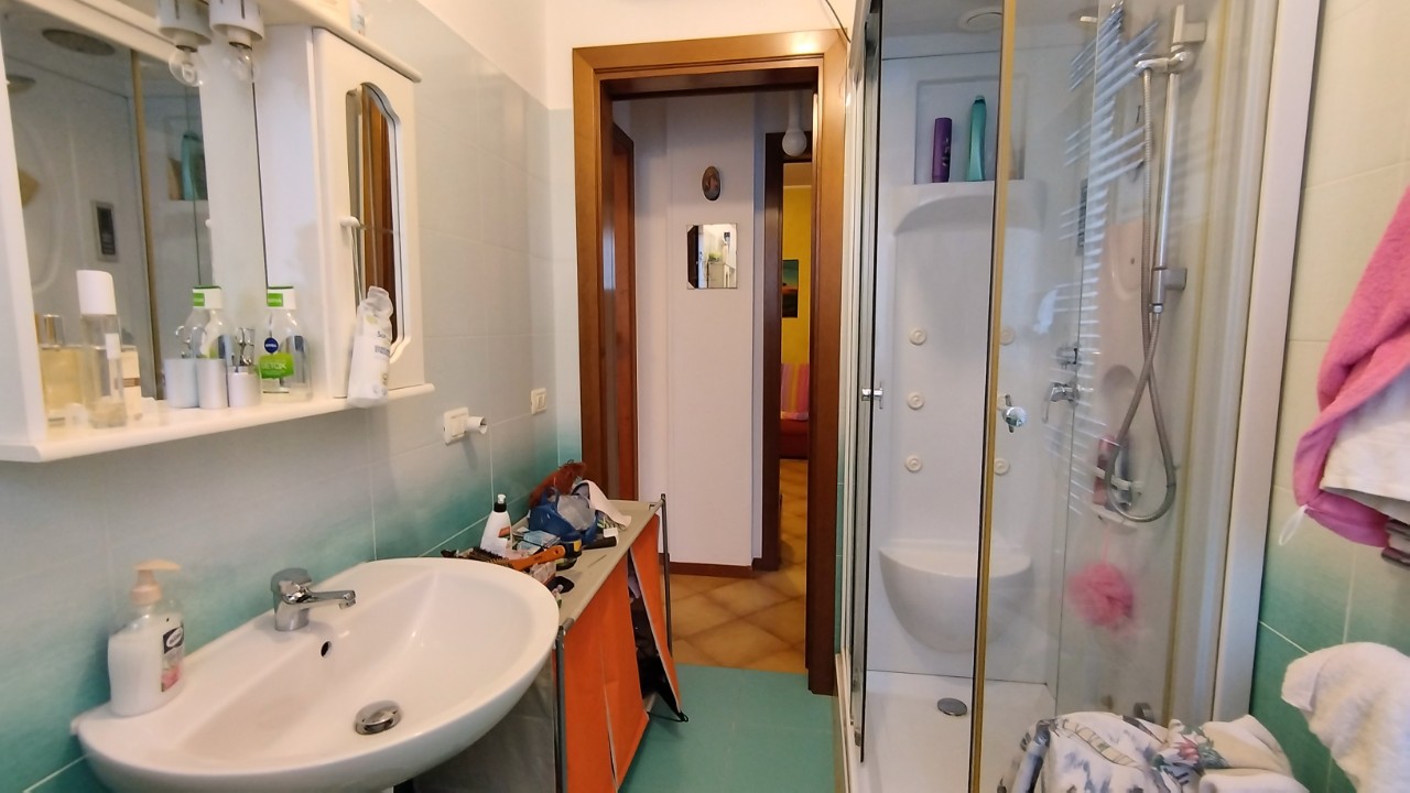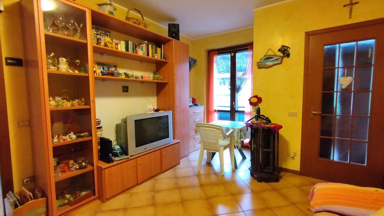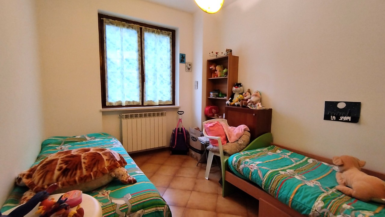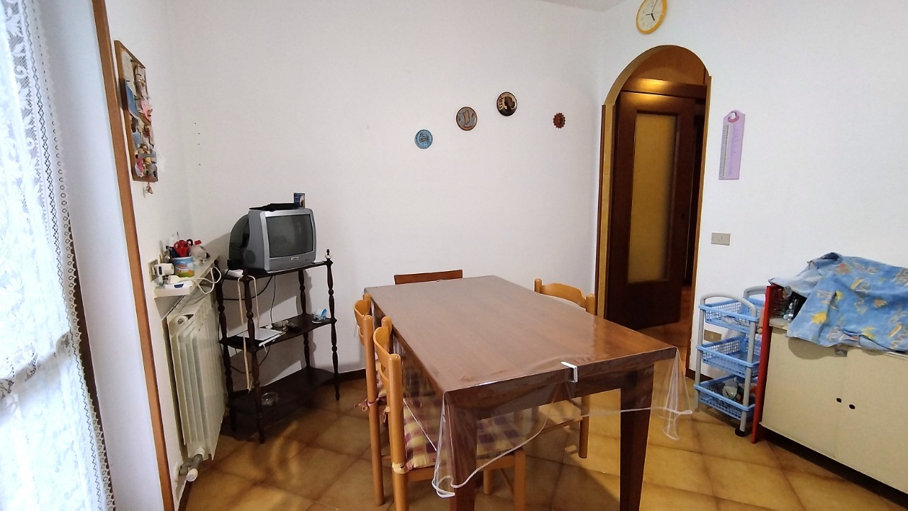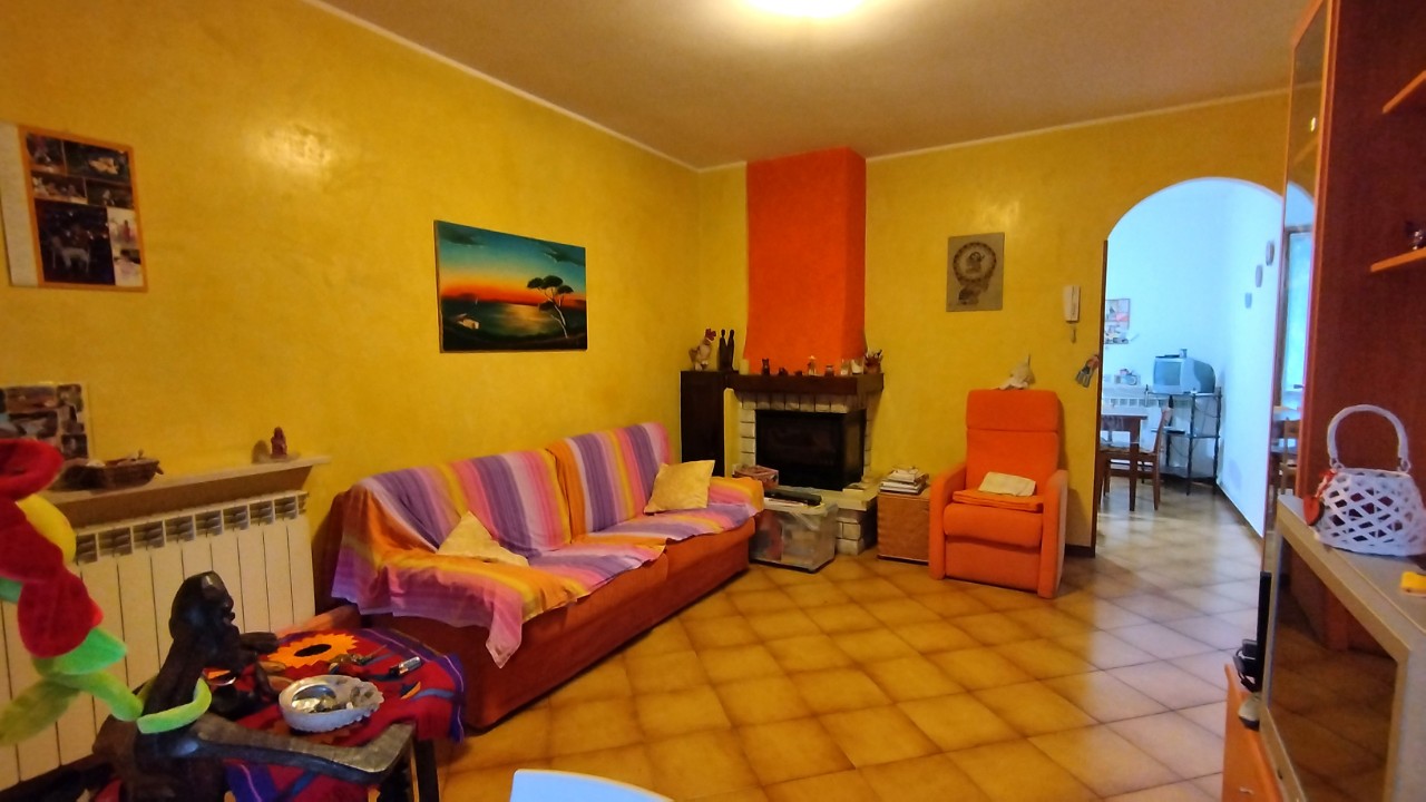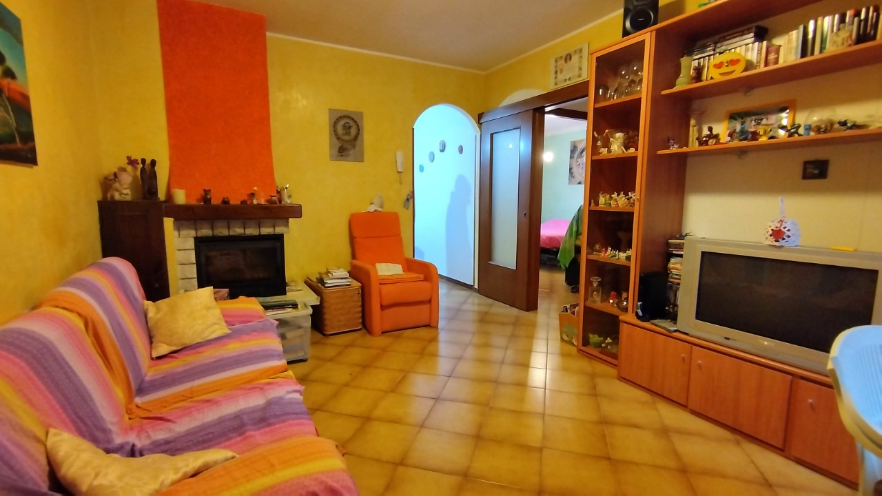 soggiorno con camino, cucina abitabile con uscita sul balcone panoramico, disimpegno che porta alla zona notte, due camere da letto, bagno finestrato ristrutturato nel 2013 e un secondo balcone sul lato dell'ingresso. Mq. 78.