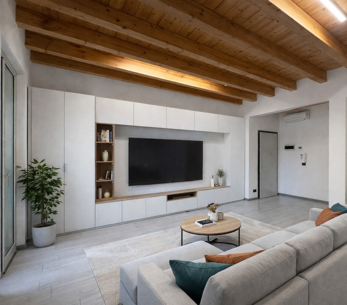 L’immobile è composto da ingresso, ampia zona giorno open space con angolo cottura, due camere e bagno. Mq. 114.