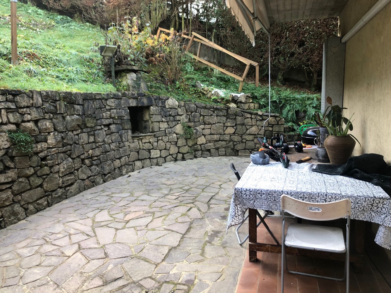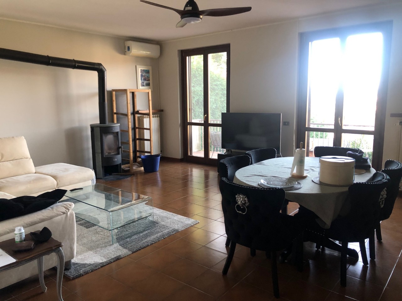 piano primo: soggiorno con stufa a legna (classe 5 certificata), cucina abitabile, bagno finestrato, balcone. Mq. 55 accesso diretto al patio esterno con tende da sole e giardino privato per un totale di circa Mq. 250