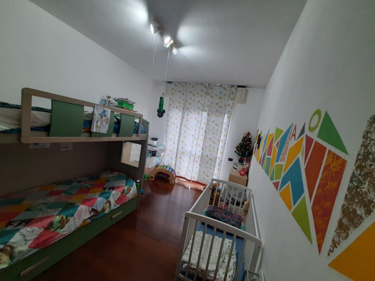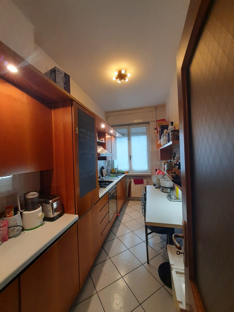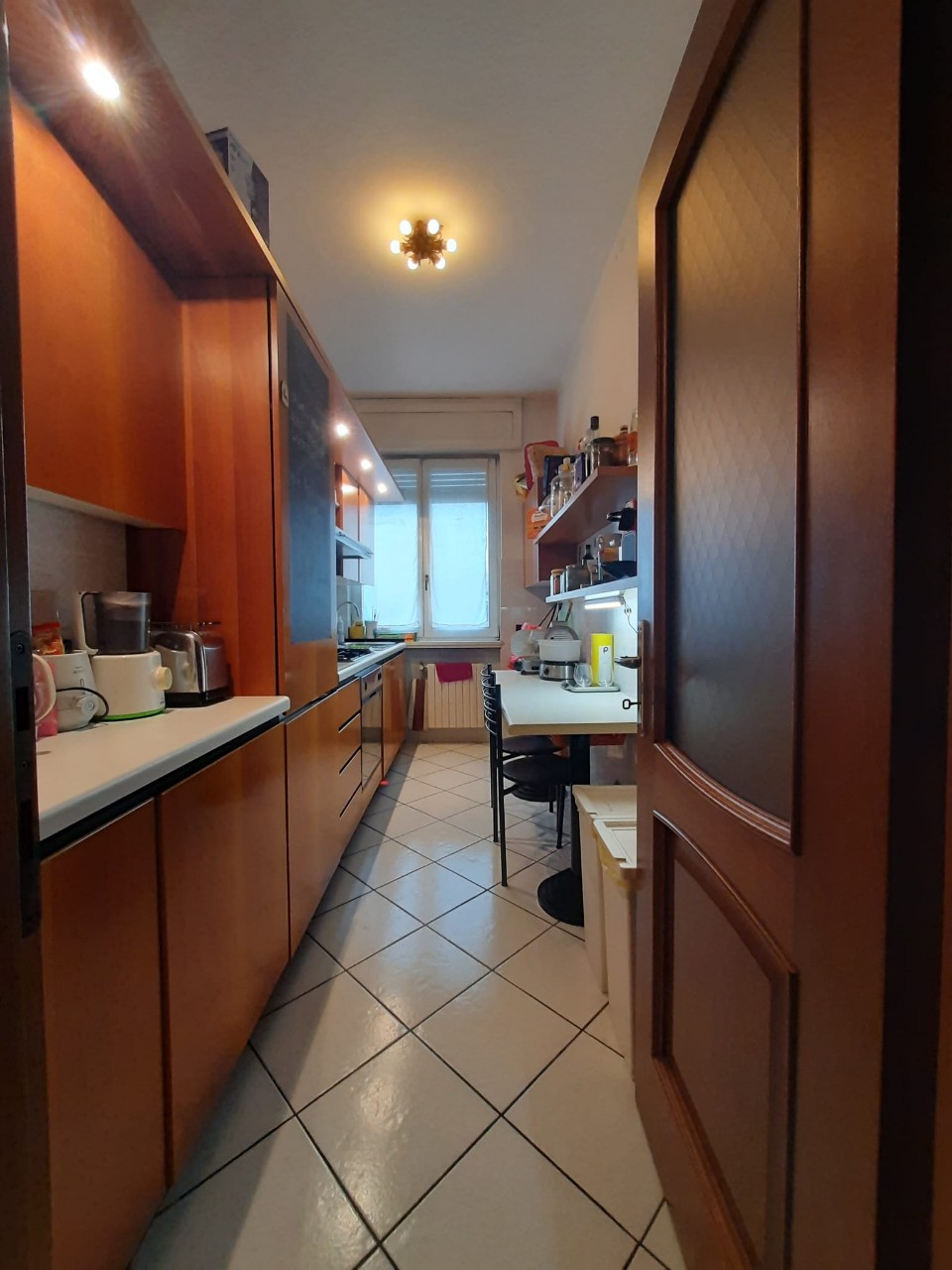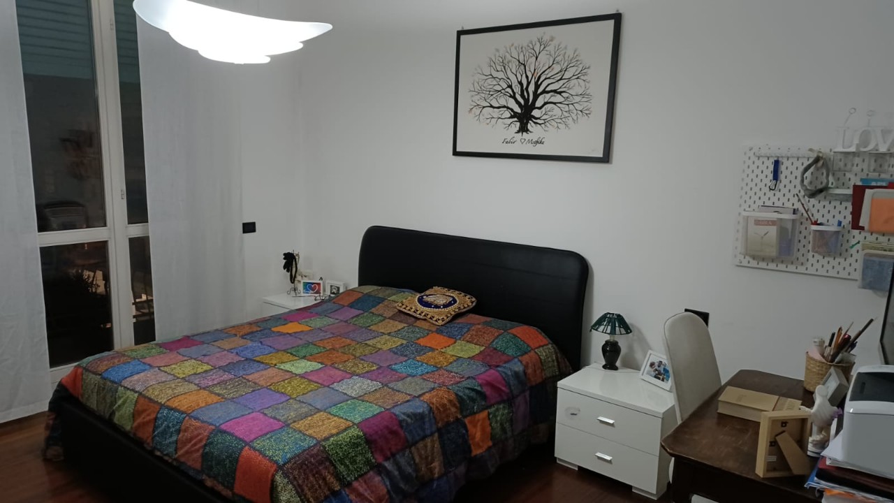 ingresso, soggiorno, cucina, camera matrimoniale, cameretta, bagno, ripostiglio con armadiature, disimpegno con armadiature, 2 balconi, cantina Mq. 85