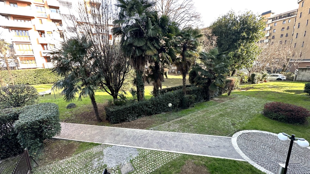 L’appartamento, di 210 Mq, nasce dall’unione di due unità immobiliari ed offre spazi generosi e grande potenziale di personalizzazione. La distribuzione interna prevede doppio ingresso, salone con accesso a terrazzo abitabile di 20 Mq con affaccio diretto sul verde del parco, cucina separata, cinque camere di ampia metratura, tre bagni e cinque balconi aggiuntivi per complessivi 16 Mq.