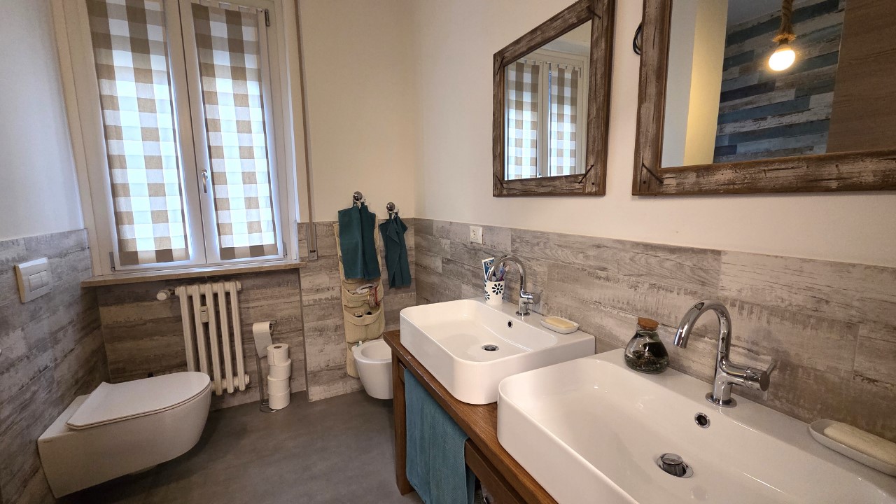 La zona notte è composta da tre camere da letto, un bagno elegante, una comoda lavanderia e due balconi che donano luce e sfogo esterno all’abitazione.