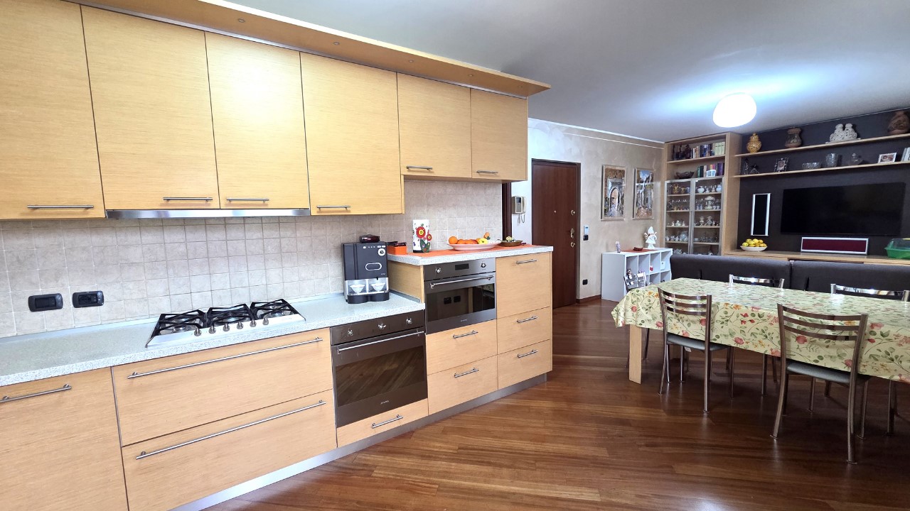 Gli spazi interni sono ben distribuiti e particolarmente luminosi: la zona giorno con soggiorno e cucina a vista crea un ambiente moderno e conviviale, mentre la zona notte offre tre camere da letto confortevoli e un bagno finestrato.