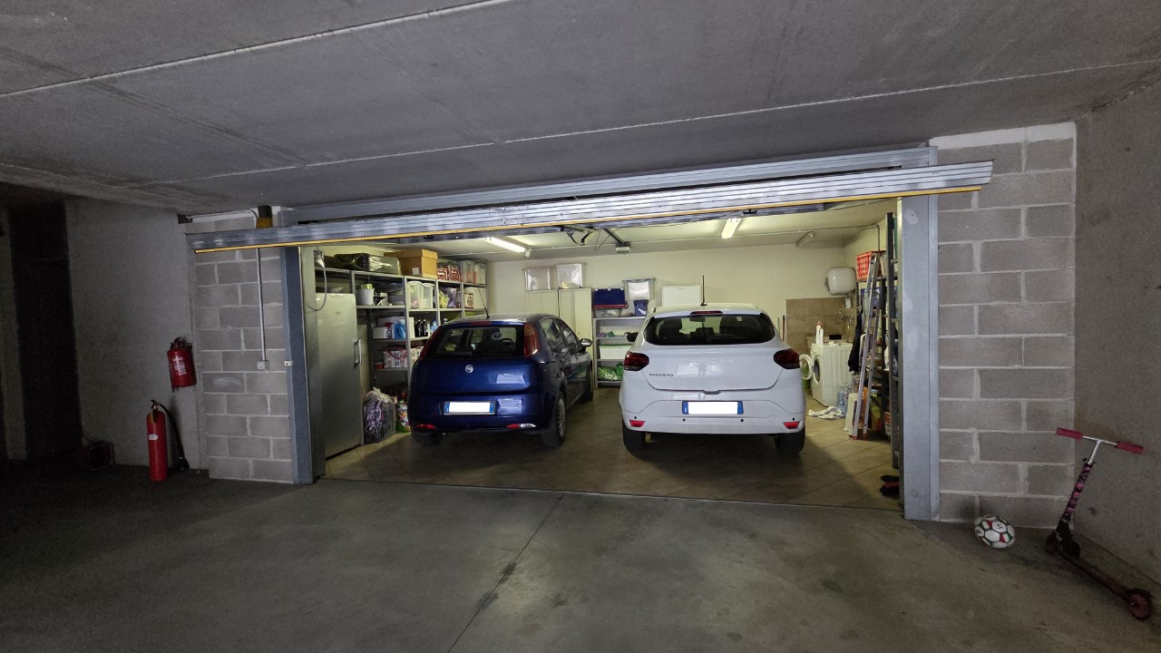 A completare la proprietà troviamo un box doppio in larghezza di circa 40 mq, un valore aggiunto raro e molto apprezzato, ideale per ospitare comodamente due auto e disporre di ulteriore spazio per deposito.