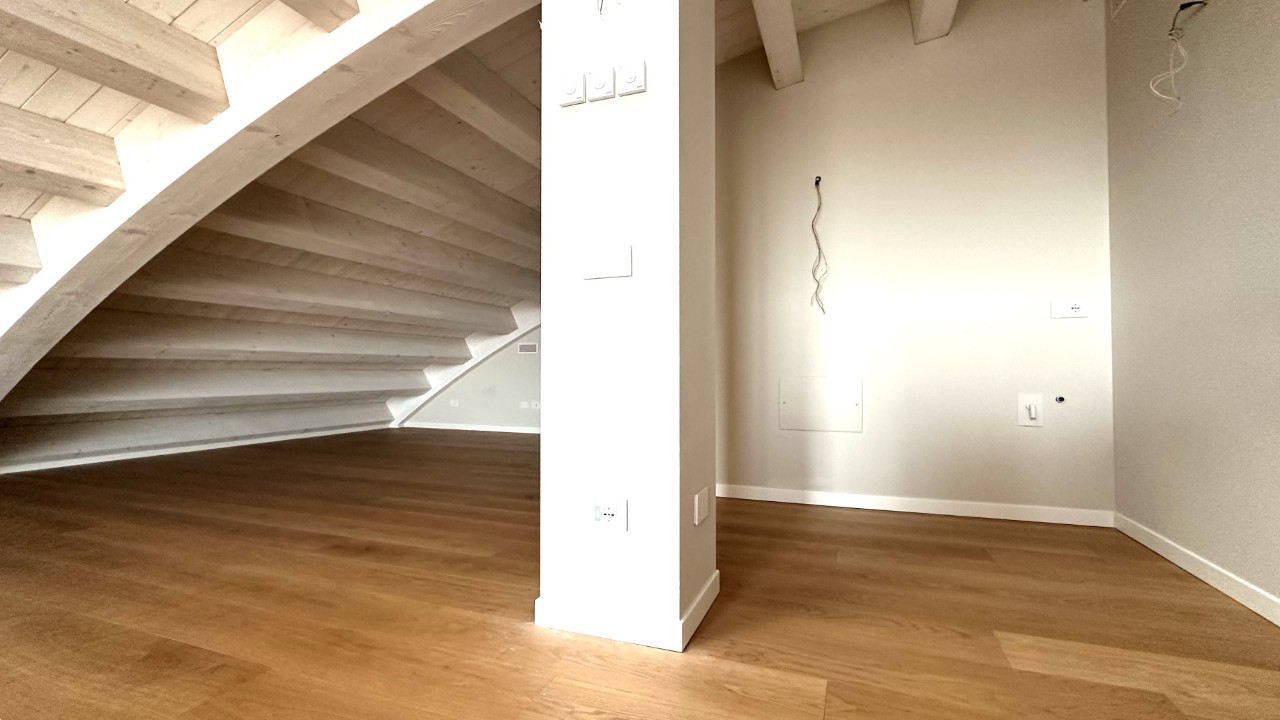 Al piano mansardato si sviluppa un grande locale open space di 58 Mq., con la possibilità di ricavare due ulteriori camere e un secondo bagno, oltre a uno splendido balcone panoramico di 10 Mq. che regala una vista davvero unica.
