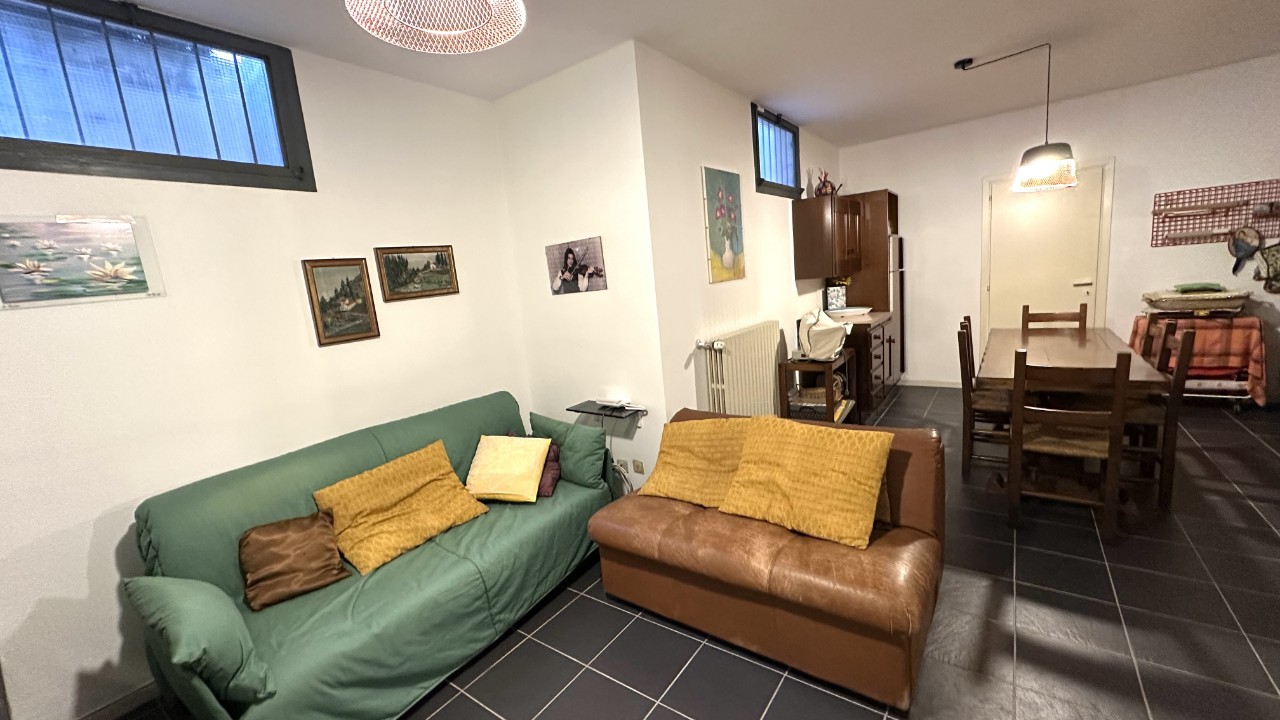 Piano terra: ingresso, luminoso soggiorno, cucina abitabile e bagno. Mq. 65.