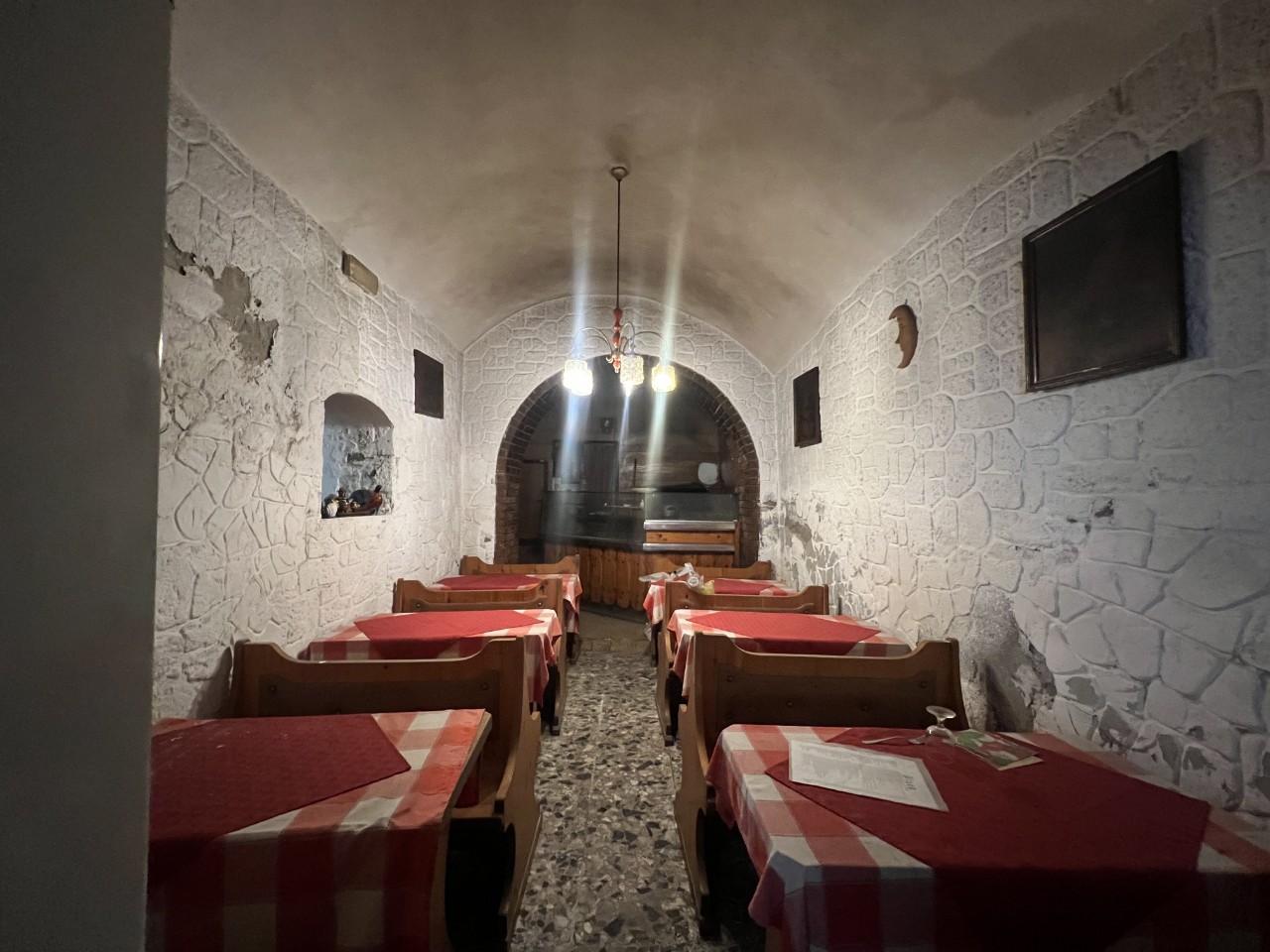 Gli spazi interni si sviluppano in due locali comunicanti, facilmente organizzabili, oltre a doppi servizi esterni e piccolo magazzino di supporto. Presente canna fumaria, elemento fondamentale per attività di cucina.