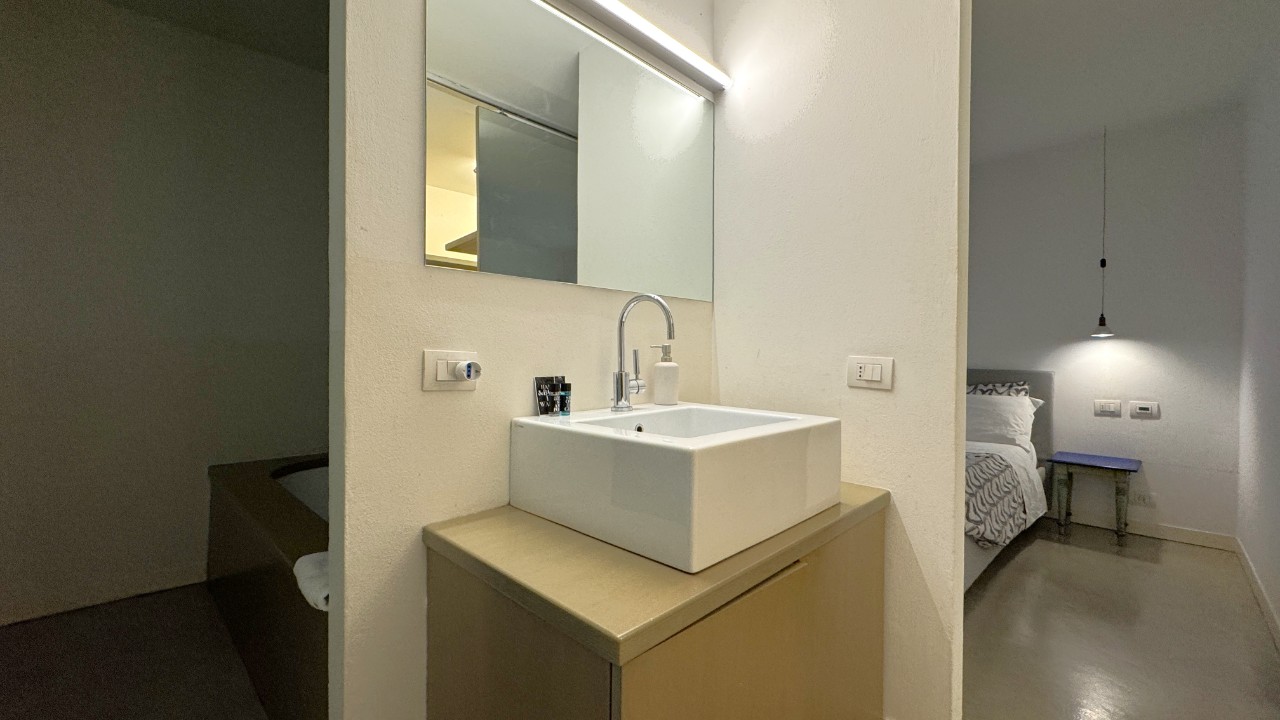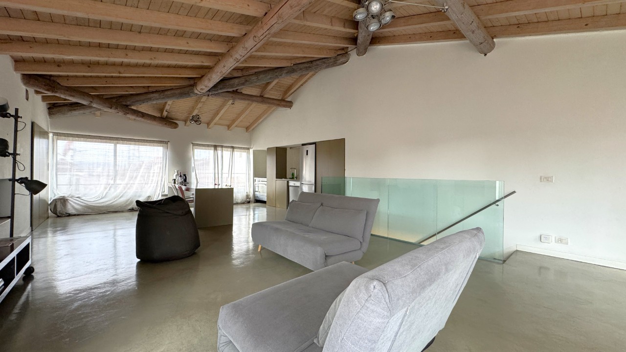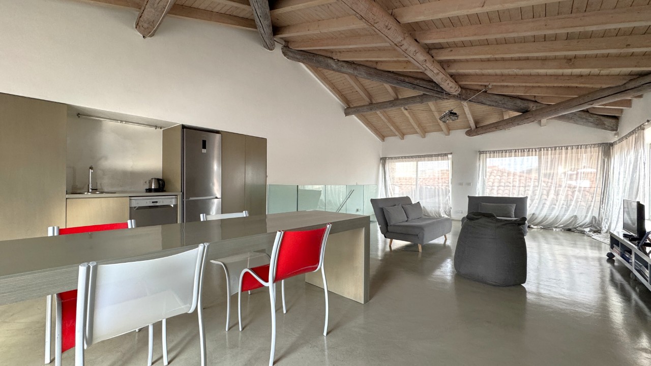 Al piano quarto si apre un ampio open space dedicato alla zona living, con cucina a vista in acciaio e grandi vetrate affacciate sui tetti della città, che garantiscono notevole apporto di luce naturale.