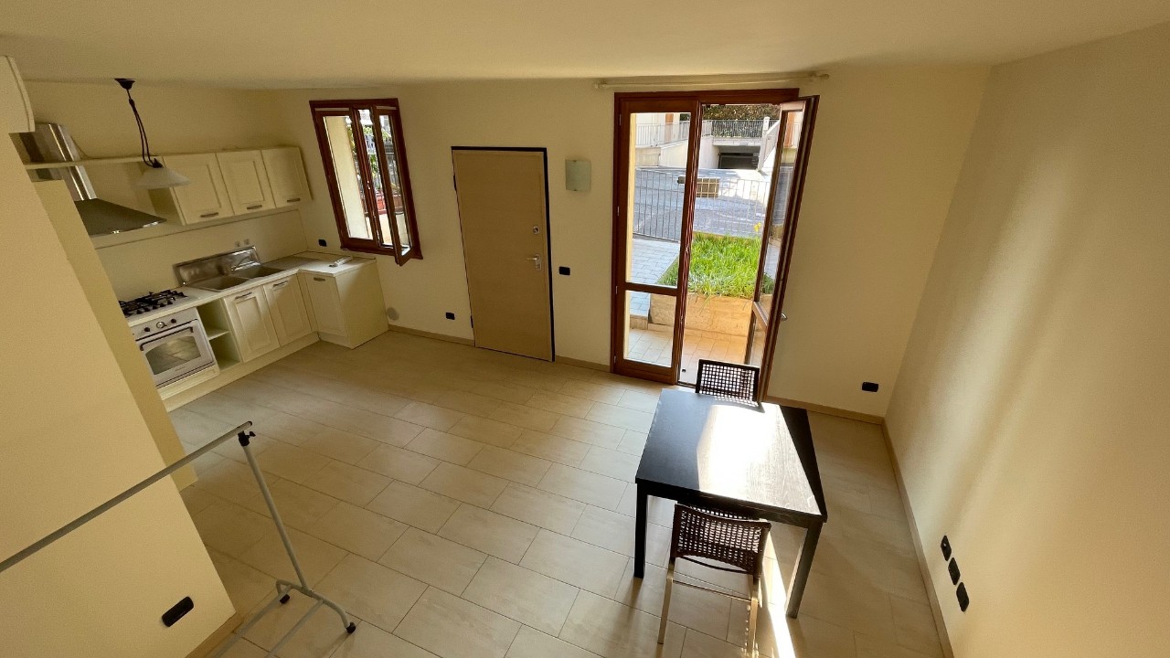 piano terra: soggiorno con angolo cottura, disimpegno con attacco lavatrice, bagno finestrato con doccia Mq. 35 area esterna Mq. 10